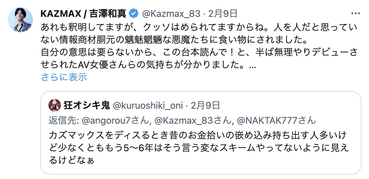 最終的にKAZMAXは、自分も騙されて利用された被害者であると主張しています。